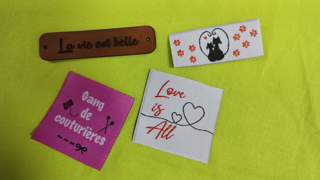 Ces étiquettes tissées sont destinées à être cousues sur vos créations artisanales ou personnalisées. Chaque modèle présente un petit message brodé, tantôt tendre, tantôt amusant, mais toujours plein de caractère.